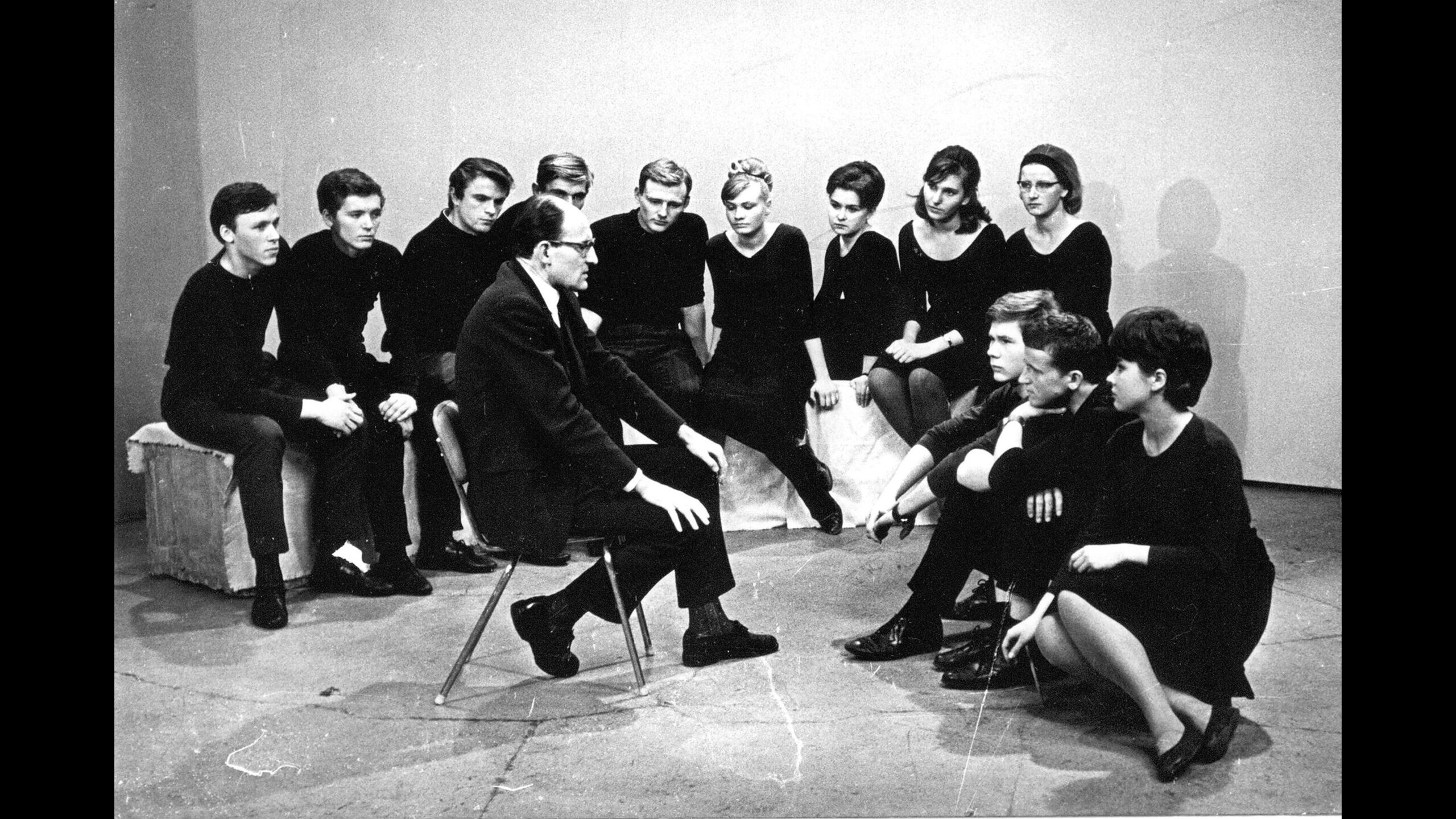 Haralds Ulmanis (pirmais no kreisās puses) un Dailes teātra aktieru 4. studija, un kursa vadītājs Pēteris Pētersons, 1969