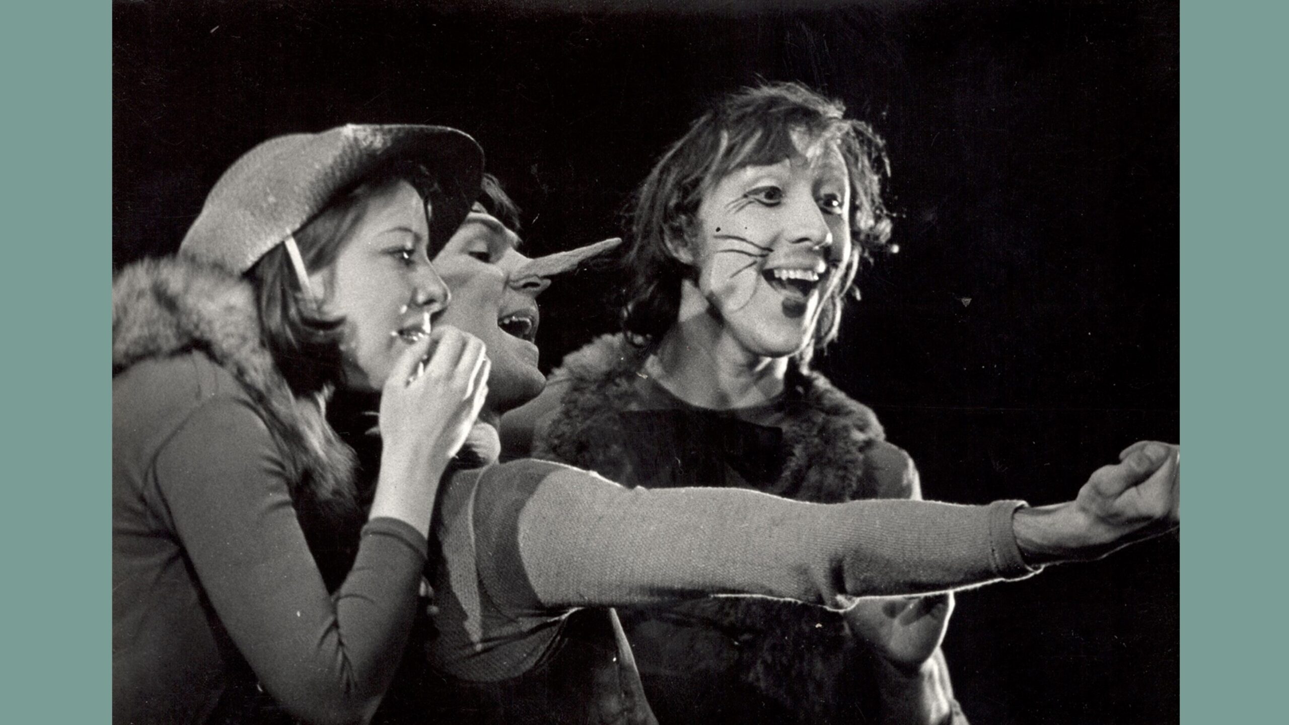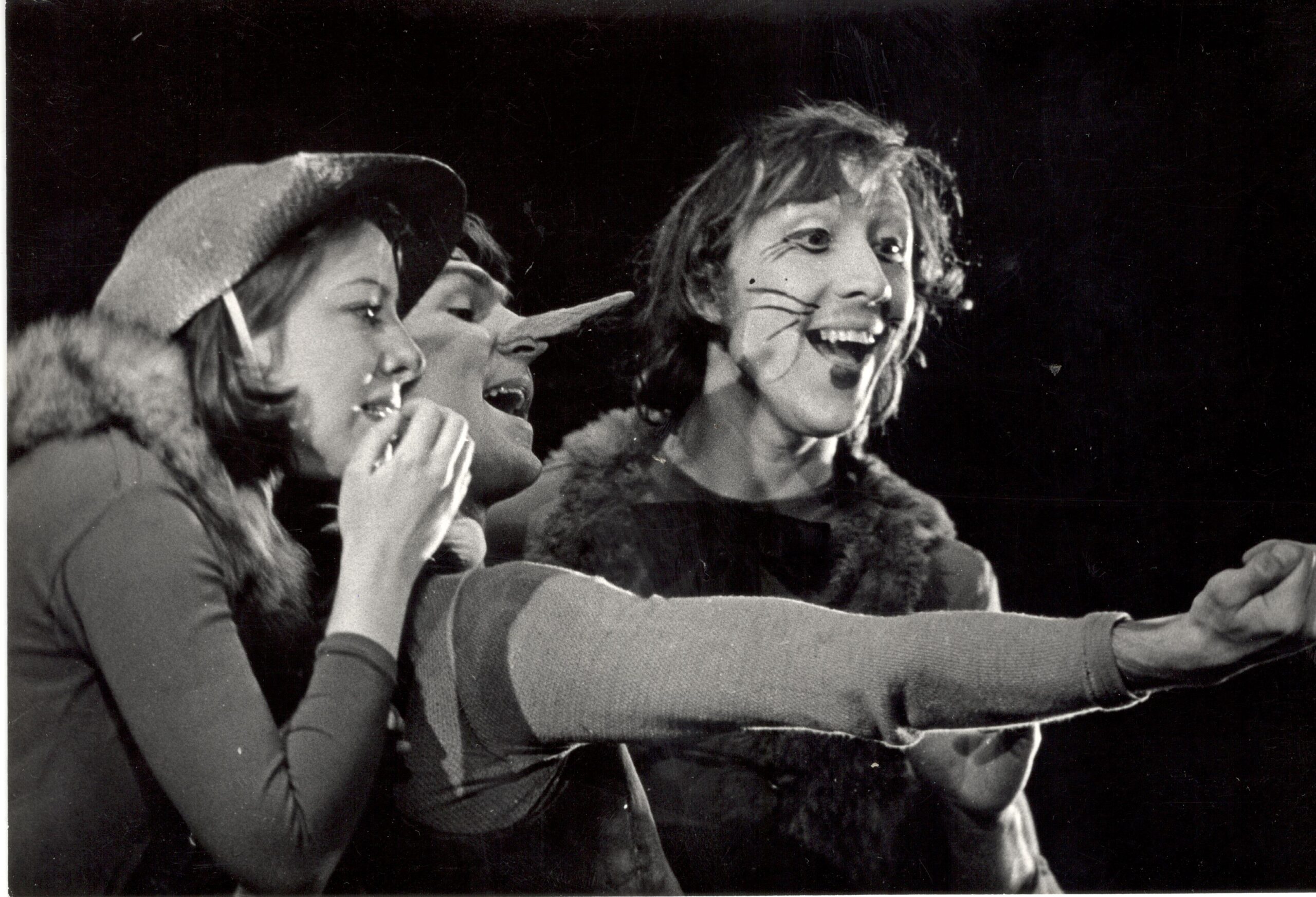 Ilga Tomase – lapsa Alise, Enriko Avots – Buratīno, Rūdolfs Plēpis – runcis Bazilio, A. Tolstojs “Buratīno piedzīvojumi Muļķu zemē”, rež. F. Deičs, JT, 1975