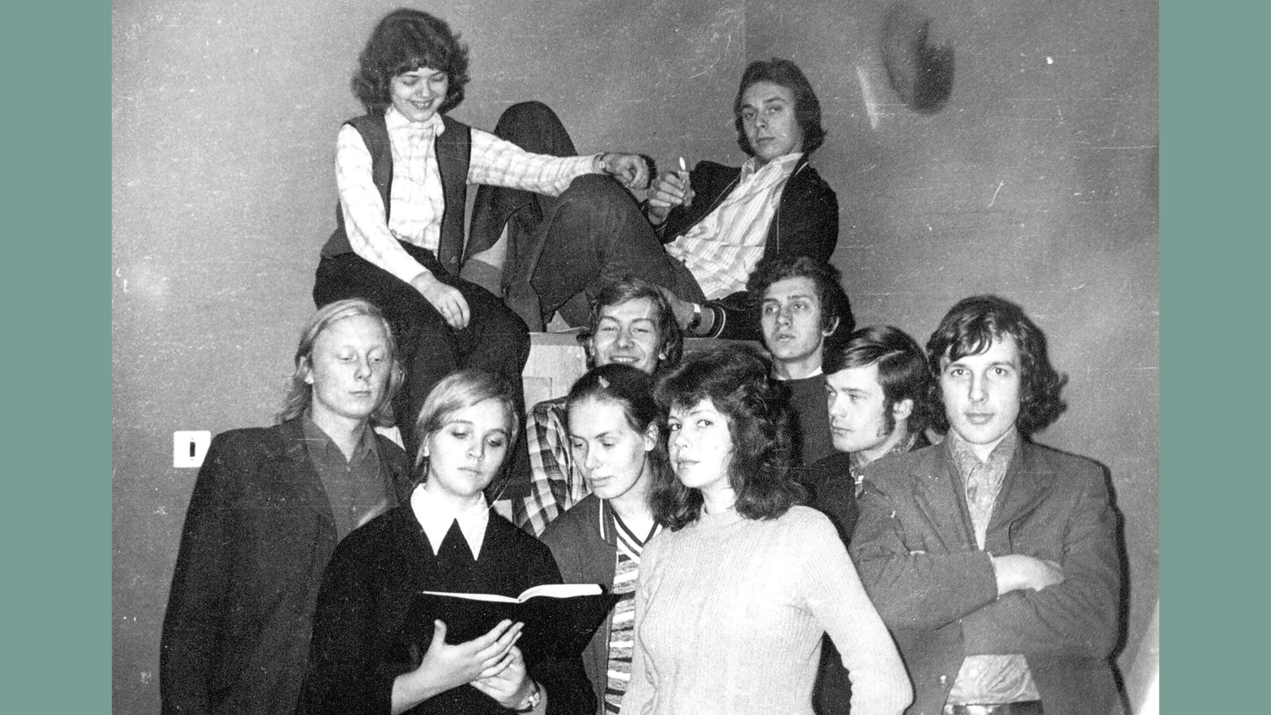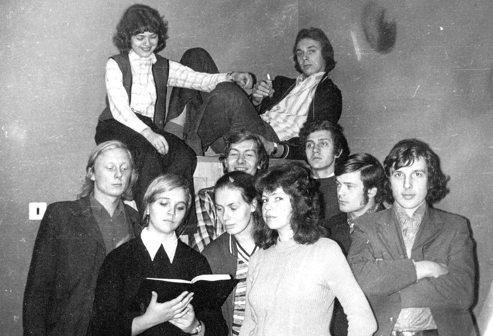 Inese Ramute ar kursa biedriem Jāzepa Vītola Latvijas Valsts konservatorijas Teātra fakultātē, 1976